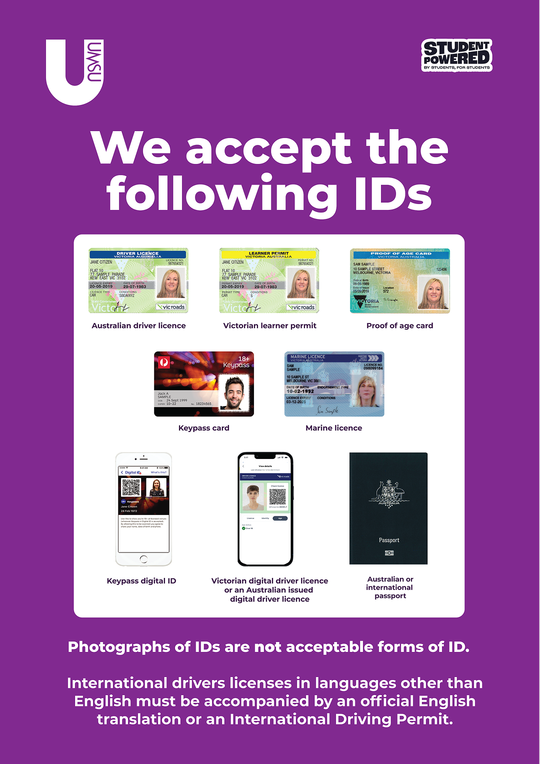 In line with Australian Responsible Service of Alcohol laws, Ida Bar staff will require proof of age with a valid form of ID.